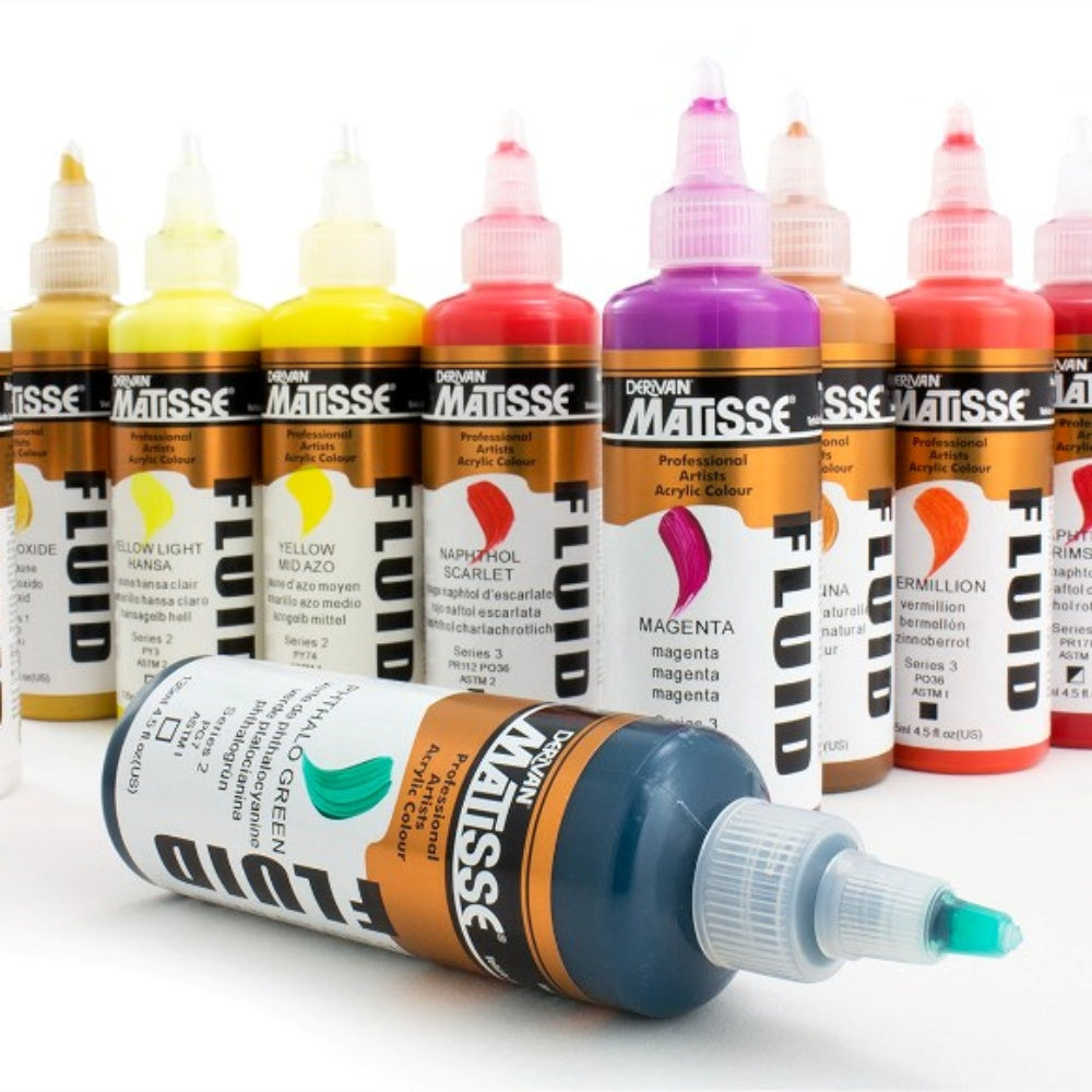 - Whether you're exploring the world of fluid art or layering delicate washes, Matisse Fluid Acrylics deliver premium quality and consistent performance every time.
