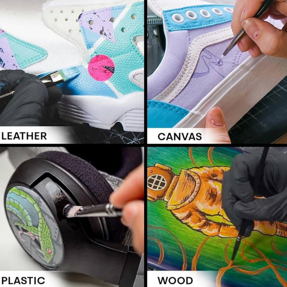 The Angelus Best Seller Acrylic Paint Kit features 12 vibrant colours in convenient 29ml bottles, offering an ideal solution for refreshing and enhancing your leather goods. Its rich pigments, long-lasting formula, and smooth application make it essential for leather aficionados and artists alike. The 29ml size strikes a perfect balance—ample for detailed touch-ups or broader projects—while remaining compact and easy to store. Suitable for professionals and hobbyists seeking precision and quality in their creative endeavours.
